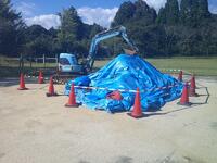 本校のテニスコート横には、砂利や真砂土を置いています。安全対策として、仕切りやコーンなどで近づけないようにしております。児童生徒の皆さんは、絶対にのぼったりしないようにしてください。また、交通公園のくぼみや水たまりができやすい箇所には、新たに砂利を敷いています。交通公園にも砂利を積んでありますので、決してのぼらないようにお願いいたします。敷地内で車を運転される際も、十分に注意し、徐行での走行をお願いいたします