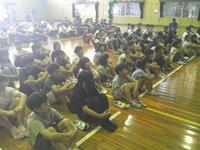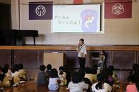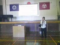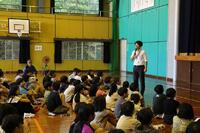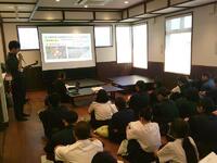 次に保体安全部のお話を中田先生(中)、持原先生(小)がしてくださいました。今日のテーマは体の健康と心の健康のお話です(*^_^*)。中田先生からは睡眠の大切さについてのお話でした。持原先生からは、心の健康に必要なものをお話いただきました。なかでも朝食を摂ること、特に納豆などの大豆食品は体に大変必要だそうです。