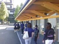 もっと学びた~い、見た~い気持ちもあった子どもたち。とても素晴らしいマナーで次の目的地に移動しました。しろやまの鐘つき堂を目指して出発~!何と井上成二郎校長先生も駆けつけてくださり、児童と一緒に頂上に登りました。
