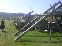 次は、リアルさを求めて、かかしの太ももや腰回りにふっくらとわらを足していきましたね。