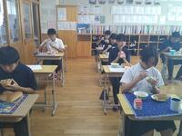 今日は、学校運営協議会の皆さんがたくさんお越しくださいました。最初に山本延久教頭先生から会の流れの説明がありました。次に佐藤淳会長よりご挨拶をいただき、井上成二郎校長先生が挨拶と学校の安全管理の面や学校の様子などの話がありました。ご参加いただいた方々から、学校の安全管理に大切なさまざまなご意見やお知恵をいただくことができ、心より感謝申し上げます。その後、授業参観をしていただき、児童生徒の一生懸命に授業に取り組む姿勢をたくさん褒めていただきました。授業参観後は、学校給食の試食会を行い、この地区の歴史などの話を聞くことができ、充実した時間となりました。今後とも学校と地域の連携をさらに深める努力をしていきますので、どうぞよろしくお願いいたします。