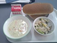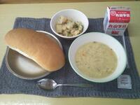 今日の給食の献立は、クラムチャウダー、レンコンサラダ、コッペパンでしたクラムチャウダーは、あさりのうま味とミルクのコクがたっぷり感じられる濃厚な味わいで、大人気でした。シャキシャキとしたレンコンサラダの食感も楽しめ、どのクラスからも「おいしい!」の声が聞こえてきました。給食係のみなさんが手際よく配膳してくれたおかげで、温かいままおいしくいただくことができました。和やかな雰囲気に包まれた給食の時間となりました