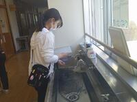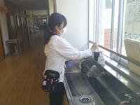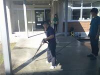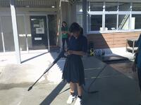 さくら学級の皆さんが、渡り廊下の汚れを高圧洗浄機を使ってきれいにしてくれました。長い間の雨や砂ぼこりで少しくすんでいた床が、みるみるうちに明るくきれいになり、気持ちのよい渡り廊下に生まれ変わりました作業中、水しぶきを浴びながらも真剣な表情で取り組み、協力し合って丁寧に仕上げてくれました。さくら学級の皆さんの活動に感謝です