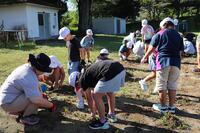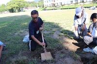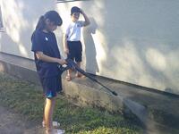今日は、児童奉仕作業を実施しました。昨日の夕方、小学部の先生方でグラウンドの状況とハチなどの安全を確認していました。今日は、グラウンドには久しぶりの児童たちの姿が見られました。持久走大会や竹馬大会などでグラウンドを使用する小学部。みんなで、スコップを使って、一生懸命に雑草を抜いてくれました。最後は、体育美化委員会が集めた草が入ったゴミ袋や道具の片付けをしてくれました。黙々とがんばっていた児童の皆さん、ありがとう(^_^)v!