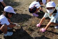 や畑の手入れに毎日頑張っています!1,2年生合同のサツマイモ畑も動物被害なく、育っています(^o^)