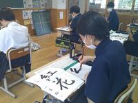 本日、中学2年生と3年生は書写の時間に行書の書き方を学びました。2年生は『紅花』、3年生は『自然』に挑戦し、筆の動きやリズムに集中しながら、文字の美しさと表現の楽しさを味わいました。静かな教室で文字と向き合う、貴重な時間となりました