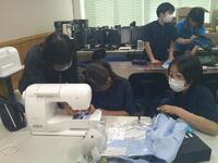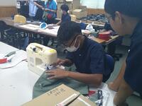 中学2年の家庭科では、災害に備える「もちだしくんバッグ」の製作に取り組んでいます。生徒たちは、耐久性や使いやすさを考えながら、自分だけのオリジナルバッグを工夫して製作しています。作業中は、はげまし隊の先生方や支援員のサポートを受けながら、安心して取り組むことができました。実際に手を動かす学びを通して、災害時に必要なものや備えの大切さを改めて実感する、貴重な時間となっています