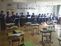 今日は、待ちに待ったしろやま支援学校との交流会の日です。4年生は、交流会のために、いろいろと準備をしてきました。どんな交流にしようか、一生懸命に考え、練習をしてきました。出発直前まで、「ジェスチャーゲーム」や「かくれんぼ」などの説明の練習に取り組んでいました。さあ、今日はしろやま支援学校の皆さんと楽しく交流をしてきてくださいね。
