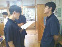 毎日の学習や活動のまとめとして「帰りの会」を行っています。この時間は、日直の生徒を中心に進められ、係の仕事や連絡事項の確認が行われます。帰りの会の最後には、一日の振り返りの時間があります。生徒たちは、今日の学習や活動での気づきやできたことを振り返り、友だちや先生と共有します。この時間を通して、自分の成長を実感するとともに、明日への目標を考える大切なひとときとなっています。毎日の帰りの会を通じて、責任感や協力する心を育みながら、学校生活をより充実したものにしています