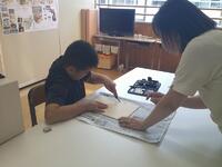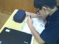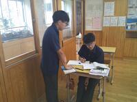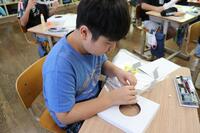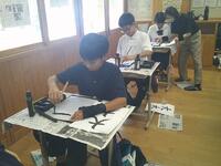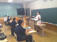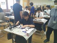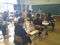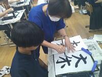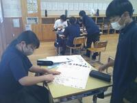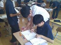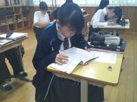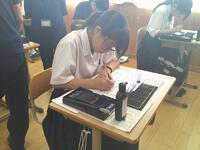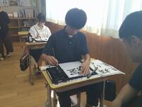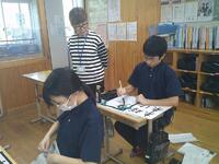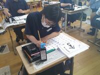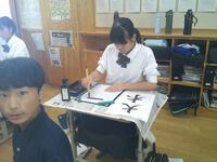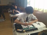 中学2年生は、2時間続きの書写の時間に取り組みました。今回で10回目となる書写の学習です。はじめに、ひらがなの練習で文字の形やとめ・はね・はらいを丁寧に確認し、その後は「豊かな森」という課題に挑戦しましたはげまし隊の先生方のいつも丁寧であたたかいご指導のおかげで、回を重ねるごとに上達し、筆を運ぶスピードも上がっています。2時間続けて集中して取り組むことで、書くことの楽しさや達成感を感じる時間となりました