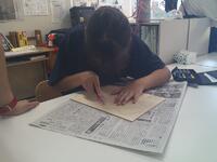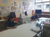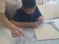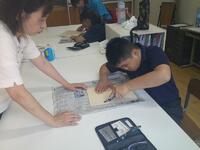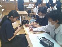 色版画の制作に取り組み始めました彫刻刀を使って下絵を丁寧に彫り進める表情は、とても真剣です。彫る力加減や線の方向に気をつけながら、自分だけの表現を工夫していました。これから色を重ねて刷り上げていくことで、どんな素敵な作品ができあがるのか楽しみです