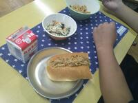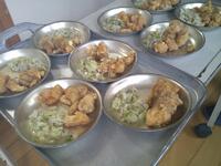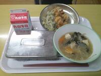 今日の給食献立は、鳥のからあげ、ゆかり和え、もやしの味噌汁でした。みんな大好き「鳥のからあげ」が登場しました。外はカリッと、中はジューシーで、思わず笑顔になる味でした。副菜の「ゆかり和え」は、さっぱりとした味わいで、からあげとの相性も抜群ですまた、栄養たっぷりの「もやしの味噌汁」は、もやしのシャキシャキ感とやさしい味噌の風味が、心もお腹もほっとさせてくれました。今日もおいしく、元気いっぱい食べられました