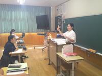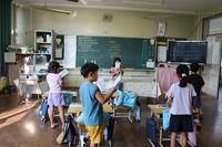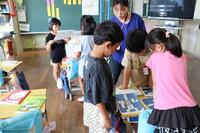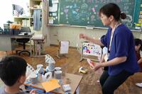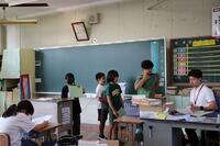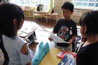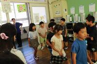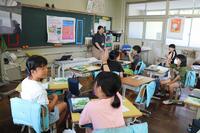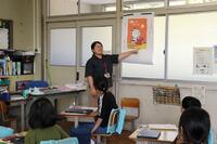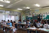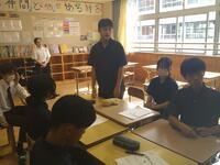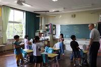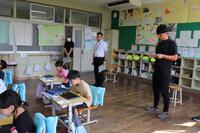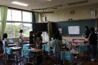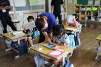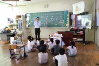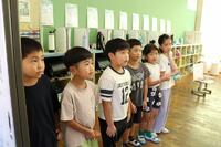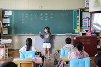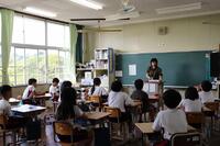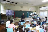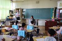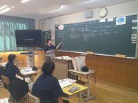 2校時に、布施佳代子先生が国語の研究授業を行いました。1年生5人は、これまでに生活の授業で生き物探しを行い、バッタ、コオロギ、カマキリなどを観察したりしてきました。その経験や題材が生かされ、本時の研究授業につながっていました。参観者からは、入学後からの児童の大きな成長に感動の声がたくさんあがりました。