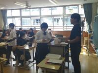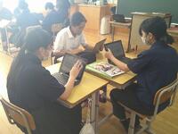 今日は、6年生の外国語の授業で、チエミ先生が来てくださいました。「I want to 〇〇 」の構文にそっていろいろな食べ物や国などの名前を考えたりして、ペア学習をおこなったりしました。