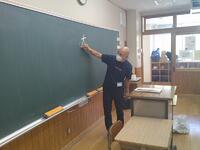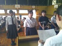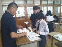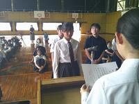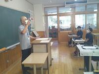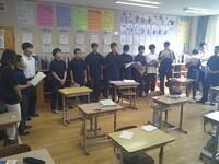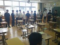 帰りの会では、音楽科の先生のご指導のもと、パート別の練習に取り組みました。特に男性パートでは、音楽科の先生が丁寧に音程や発声を確認しながら指導してくださいました。生徒たちは真剣な表情で音とりに集中し、少しずつ自信をもって歌えるようになってきています