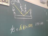 中学1年生の理科では、「光の反射の法則」について学習しました。授業の中では、「入射角と反射角が同じなんだよ」「光はまっすぐ進むからこうなるんだね」などと、自分のことばで先生に説明する姿も見られました。生徒たちは、身のまわりの鏡や光の反射にも興味をもち、意欲的に学習に取り組んでいました