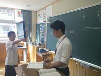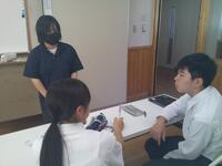 中学1年生の英語の授業では、「Why...?(なぜ?)」「Because...(なぜなら〜)」を使って、理由を伝える表現を学びました「Why do you like her?」「Because she is kind to me.」など、ペアでの会話練習を通して、自分の気持ちを英語で伝える楽しさを感じていました。また、前置詞の使い方にも取り組み、「on」「in」「to」「from」などの違いを実例をもとに確かめながら理解を深めました。友だちとの会話を通して、英語で伝え合う力が少しずつ育っています