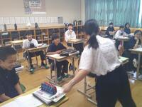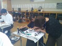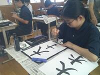 9回目となる1年生の書写の時間では「大木」に挑戦しました。生徒たちは、文字の形やバランスを意識しながら、丁寧に筆を運ぶ姿が見られました。はげまし隊の先生方の指導のもと、日ごとに上達していく様子が感じられます。明日も1時間、書写の時間が予定されており、さらに仕上がりを高める取組が続きます