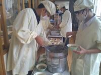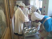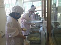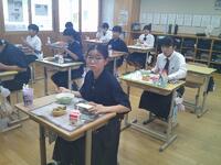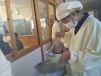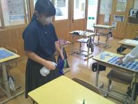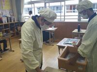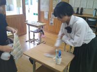 給食配膳に向けて、一つ一つの机を丁寧に拭き、清潔な環境を整えています。心を込めて布で拭きあげる姿からは、仲間と一緒に食事を楽しむための思いやりが感じられますこうした小さな積み重ねが、給食の時間をより気持ちよく過ごす大切な準備につながっています