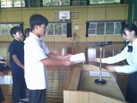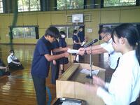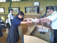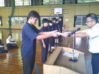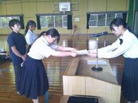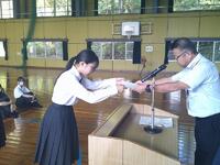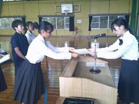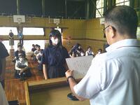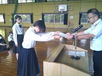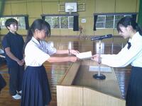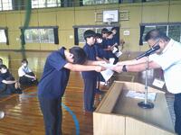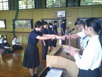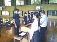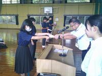 生徒会任命式が行われました。これまで活躍してくれた生徒会役員の皆さんには、これまでの功績に対する感謝状が贈られ、それぞれがこれまでの活動を振り返りながら、仲間や先生方への感謝の気持ちを述べました。新生徒会役員には任命状が手渡され、これから学校のために取り組みたいことや抱負を堂々と発表しました。生徒たちの真剣な姿や決意の言葉から、これからの学校を支えていく力強さが感じられました校長先生からは、「生徒会の活動を通して、全員の力が十分に発揮され、学校のよさを広くアピールできるような学校づくりが、これからも大切。さらに素晴らしい学校になっていきます。」とのお言葉をいただきました。今回の任命式を通して、生徒会役員の皆さん一人ひとりが学校の中心となって、よりよい学校づくりに向けて力を合わせていく姿勢が感じられました