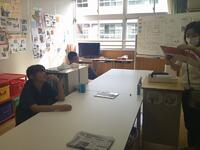 今日は、落合先生が国語の研究授業を行いました。「ポスターを読もう」という題材で、身近なポスターを通して、子どもたちが見る視点や読み取りについてをそれぞれ考えたり、発表したりと学びの深い時間となりました。