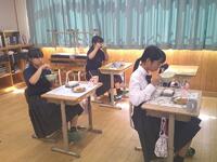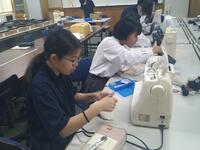 1年生の家庭科では、ミシンを使った製作活動に取り組んでいます。回を重ねるごとに操作にも慣れ、スムーズに作業が進むようになってきました家庭科の先生や「はげまし隊」の先生方の丁寧なご指導のおかげで、一人一人が自信をもってミシンを扱えるようになっています。これからの仕上がりが楽しみです
