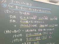 中学1年生の社会の授業では、「ヨーロッパの統合」について学びました。「どうして違う国なのに、同じお金が使えるのだろう?」という素朴な疑問から、ヨーロッパの国々が協力してつくった「ヨーロッパ連合(EU)」の仕組みを考えました。共通の通貨「ユーロ」を使うことで、国をこえて買い物や旅行がしやすくなっていること、また経済や環境などの面でも協力し合っていることを知ることができて、世界の国々が互いに支え合いながら発展していることを実感していました