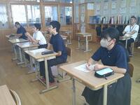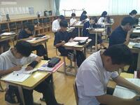 3年生は本日、実力テストに取り組みました。これまでの学習の成果を発揮しようと、どの生徒も真剣な表情で問題に向かっていました受験に向けての大切な節目となるテスト。これまでの努力を自信に変えて、次のステップへとつなげていってほしいと思います