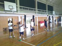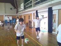 中学2年の育の授業では、バレーボールのアンダーパスの練習に取り組みました。アンダーパスでは、ボールを正確に味方に返すために、膝をしっかりと曲げて低い姿勢を保つことがポイントです。生徒たちは先生の指示に従いながら、膝の使い方や手の位置を意識して練習に励みました。繰り返しの練習の中で、少しずつ安定してボールをコントロールできるようになってきています