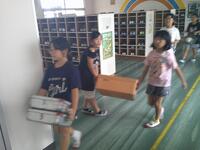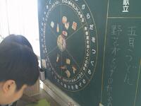 給食を終えた後はみんなで協力して片づけを行います。食器は決められた場所へ返却します。片づけの時間は、仲間と声を掛け合いながら進めることで、協力する大切さや思いやりの心を育てるよい機会になっています。明日の献立黒板の準備も一人ひとりが手分けして材料シールや文字を確認しながら、丁寧に作業を進めました。みんなで協力することで、明日の給食がより楽しみになる黒板が完成しました