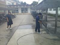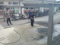高圧洗浄機を使って駐輪場の清掃を行いました。長い間積もっていた汚れがきれいに落ち、色が真っ白に蘇りましたさくら学級のみなさんのおかげで、駐輪場は見違えるほどきれいになりました。本当にありがとうございます