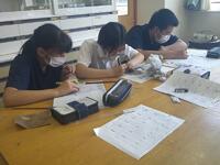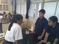 中学1年生の理科では「水溶液の性質」を学習しました。今回は、水に砂糖を溶かす実験に取り組みました。砂糖が水に少しずつ溶けていく様子を観察しながら、「溶ける」とはどういうことなのか、そして水溶液がどのような性質をもっているのかを考えました。「水に砂糖を溶かす」と聞くと、ただの身近な出来事に思えるかもしれません。砂糖は水に入れると姿を消すように見えますが、なくなったわけではありません。どこへ行ったのか? 生徒たちはさまざまな発想を出し合い、まるで探偵のように“消えた砂糖”の行方を追う姿は頼もしく、教室は小さな研究所のようでした