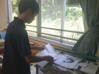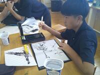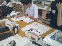 中学3年生の美術では、水墨画に挑戦しています。作品づくりの中で、余白を活かした表現や、ぼかし・かすれ・にじみといった墨ならではの技法を工夫しながら取り組んでいます。さらに、墨を重ねることで深みを出すなど、静かな集中の中で、墨ならではの奥深い世界を楽しむ時間となっています