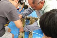 次は、リアルさを求めて、かかしの太ももや腰回りにふっくらとわらを足していきましたね。