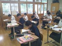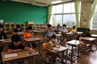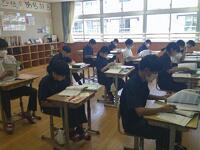 4年生は、先生からスペシャルな漢字問題を5題出題してもらって、満点を取るために一生懸命に解いていました。