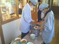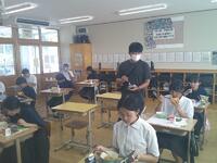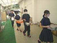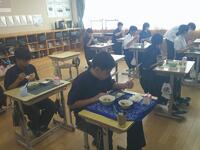 毎日の給食時間、配膳から後片付けまで、みんなで協力して取り組んでいます。給食を食べ終えた後も、食器を片づけたりと、一人ひとりが役割を果たす姿が見られます。おいしい給食を作ってくださる調理員の方々への感謝の気持ちを大切にしながら、これからも仲間と力を合わせ、気持ちよく食事の時間を過ごしていきたいと思います