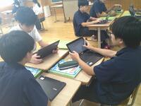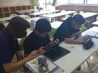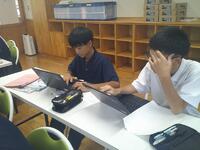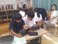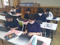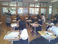 2年生は、本時の学習「カタカナをつかって文をつくろう」の後に、1人1人が真剣にスキルアップに取り組んでいました。時には「先生、わからん」と本音を言う声も、、、。先生から教えてもらうと笑顔で取り組むことができました。