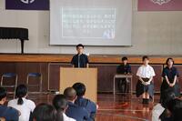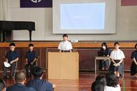本日、生徒会役員選挙の立会演説会が行われました。立候補者は、学校生活をよりよくするためのアイデアや、自分の思いを堂々と発表しました。熱い思いが伝わる演説に、聞いている生徒たちも真剣な表情で耳を傾けていました。演説会の後は投票が行われ、全校生徒が自分の意志で大切な一票を投じました。初めての投票を経験する1年生は、責任ある態度で選挙に参加する姿が印象的でした。今回の立会演説会を通して、生徒たちは「自分の考えを伝えることの大切さ」と「仲間の意見を尊重すること」を改めて学びました。新たな生徒会役員のもとで、より活気ある学校生活が展開されることを期待しています