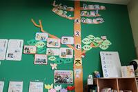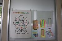 小学4年生です。「まえむ木」を育てている真最中です真最中です。ほかにも「うめらいす」「あいうえお」にちなんだ話の聞き方やその時使う素敵な言葉の掲示物がありました。