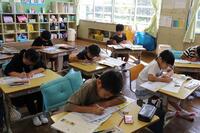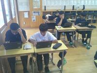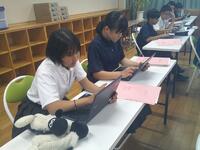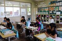 5年生は、休み時間ショットです。休み時間でも、宿題の漢字の間違いを丁寧にやり直している児童がいました。