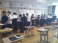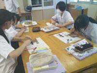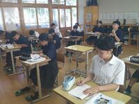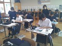 本日、1年生は書写の時間に取り組みました。はげまし隊の先生にも来ていただき、丁寧なご指導を受けながら、次回の清書に向けて練習を重ねました。生徒たちは「もっと上手に書きたい!」という思いを胸に、一画一画に心を込めて筆を運んでいました。練習を積み重ねることで、文字の形や姿勢も整い、清書への期待がふくらんでいます