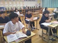 中学3年生の道徳の授業では、一枚の写真を通して学ぶ時間をもちました。校長先生のご指導のもと、生徒たちは写真に映る状況をじっくりと見つめ、自分の感じたことや考えを話し合いました。身近な生活のことだけでなく、世界で起きている現実にも目を向けることの大切さを、生徒たちは改めて感じることができたようです。写真を通して考える時間は、心の視野を広げる貴重な体験となりました