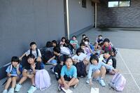 晴天の中、小学3、4年生は、バスの運転手さんに「今日はよろしくお願いいたします」の元気なあいさつを済ませ、内藤記念博物館やしろやまの鐘つきのある頂上まで登ってきました。