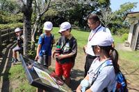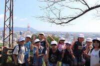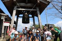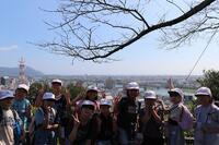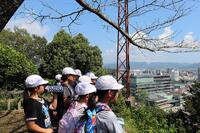 もっと学びた~い、見た~い気持ちもあった子どもたち。とても素晴らしいマナーで次の目的地に移動しました。しろやまの鐘つき堂を目指して出発~!何と井上成二郎校長先生も駆けつけてくださり、児童と一緒に頂上に登りました。