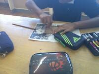 木材を紙やすりで丁寧に磨き、角を落としていく作業は根気が必要ですが、少しずつ自分の手にしっくりとなじむ形になっていくのを実感できるのが魅力です「最初はごつごつしていたけれど、だんだんつるつるになってきた!」と生徒たちからも嬉しそうな声が聞かれました。ただの木の棒から、自分だけのオリジナルの箸(はし)に仕上がっていく過程を通して、ものづくりの楽しさや達成感を味わっています