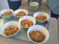 本日の給食は「ウィンナーと野菜のチリソース煮」。 ピリッとしたチリソースの味わいに、ウィンナーのうま味と野菜の甘み、しっかりと煮込まれており、とってもおいしかったです。「つぼみふっくらサラダ」。ブロッコリーとカリフラワーを中心に使ったサラダで、どちらも小さな花のつぼみが集まったような姿をしていることから、この名前がつけられています。鮮やかな緑と白のコントラストが食欲をそそり、シャキッとした食感も楽しめます。栄養も豊富で、ビタミンCや食物繊維がたっぷり。見た目もかわいらしく、体にもうれしい一品でした