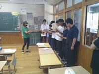 推進係の児童さんの話を聞く姿勢がとても良かったです。取り組むことは、ふたつ。ひとつめは、毎日点検活動をして、担当の森永先生に報告すること。ふたつめは、朝の会や帰りの会で学級のみんなに報告し、良いところを増やし、ほめていく活動を目指すこと。さあ、あさってから全員でがんばりましょう!
