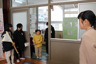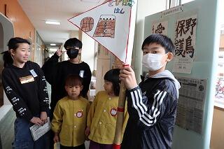 今回は、来年度最高学年となる5年生が、学校探険用の旗を作成して、案内をしてくれました。