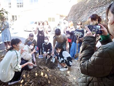 令和6年2月18日。保護者の方々の温かい眼差しを背中に感じながら寄せ書きをしたり、穴を掘ったり・・・。