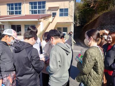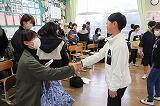 のべ56名の方々が携わってくださっており、本当にありがたい上南方小中学校です。中学部2年生、1年生。小学部3年生、4年生がお礼の言葉を伝えたあとに、小学部1年生から、中学部3年生までの各学級の代表の子どもたちが、お礼の言葉を言いながら、メッセージの寄せ書きやお手紙を渡して感謝の会を終えました。